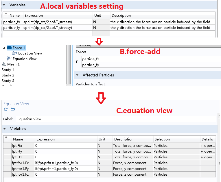 3、model particle tracing for fluid flow ,and "Force_x" =lift force(x),"Force_y"=lift force(y)