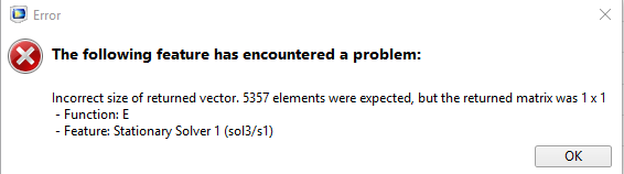 I include the temperature as a parameter and performed a parametric sweep. but during computation following error occurred. I adjust the output from the MATLAB as a vector for the requirement and still I'm getting the following error.