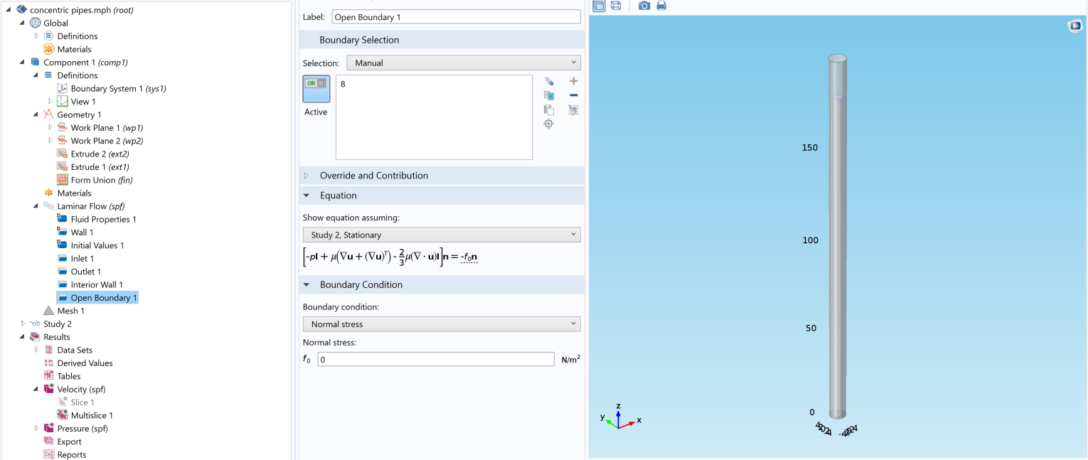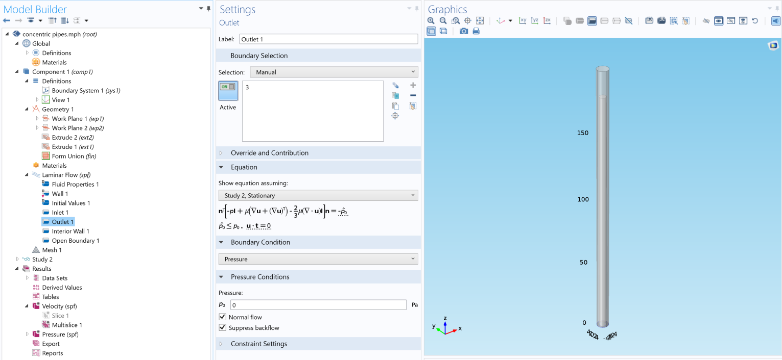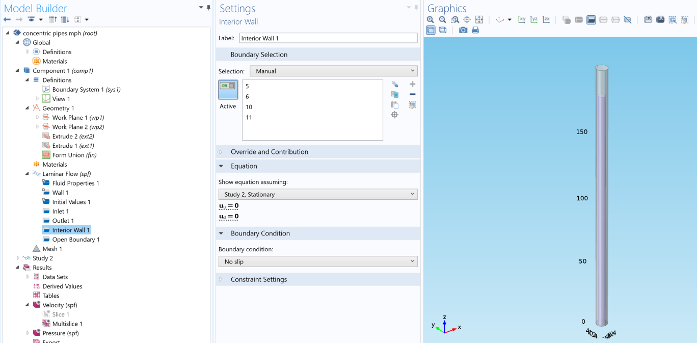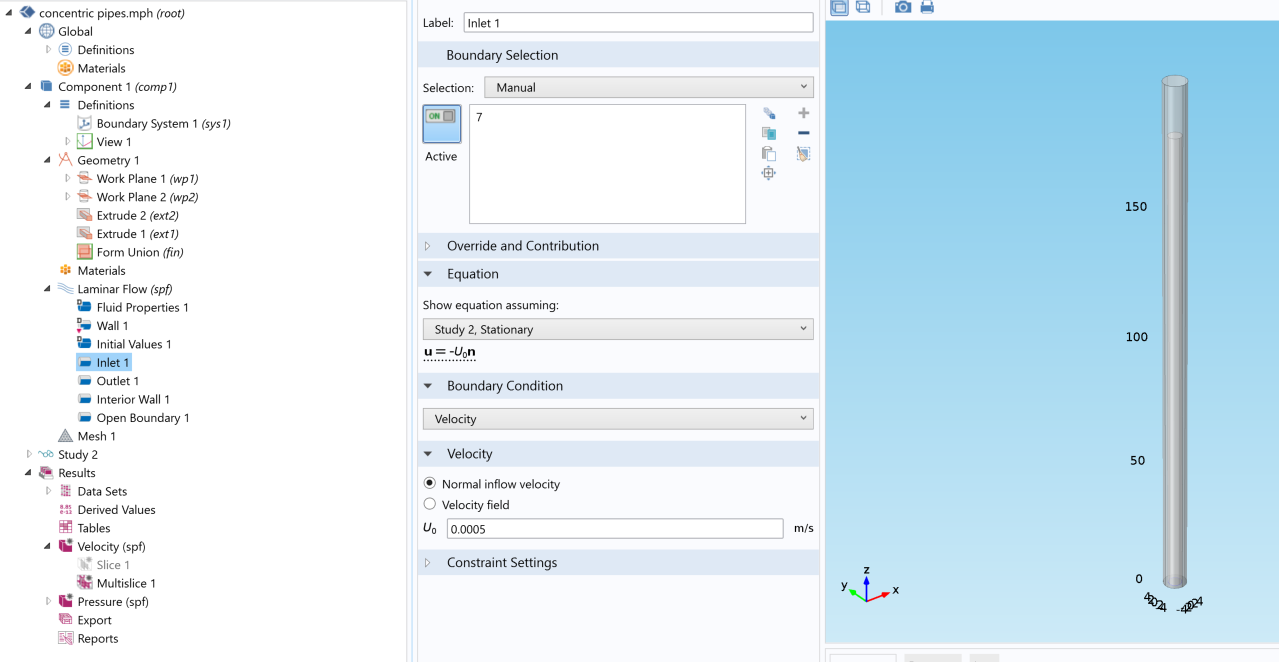 I am trying to simulate fluid flow through two concentric pipes. My model runs properly for low velocities (0.0005 M/S) but not higher once (0.5m/s). Attached are some pictures of the model. Please assist me.