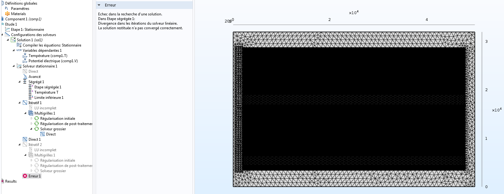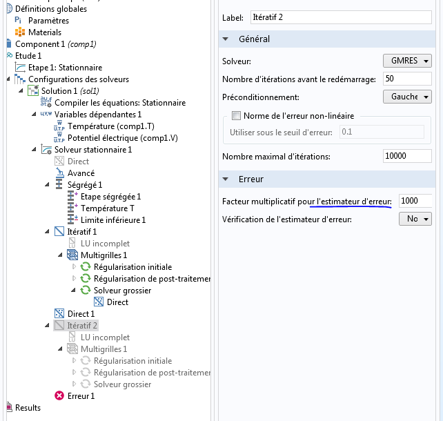 Hi everyone, I have a problem that hasen't been solved, After I have well meshed my structure ( a kinf of thermoelectric genrator using seebeck effect ), I used the stationary study, a had an error in the solver as the image in below shows, the error mentions that I should enhance the error estimation factor, So il did that and the same problem is repeated and the solution is diverged, Please can someone help me, thank you a lot, E.Bdhaifi