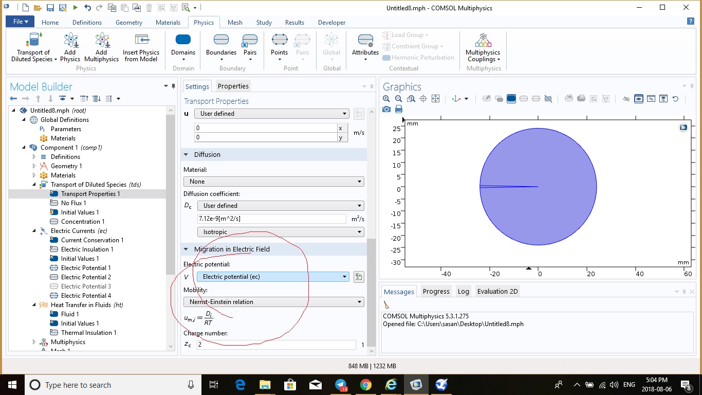 So should I add an Electrostatic physics field? Because adding an electric fied under migration option of Transport if Diulted Species doesn't work.