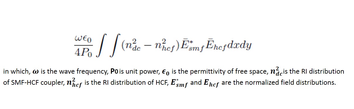 I built two soultions, one is the single mode fiber and other one is the hollow core fiber and I need to find the coupling co-efficient "kappa". Please let me know how can I implement given integral expression using normalized fields from two of these solutions.