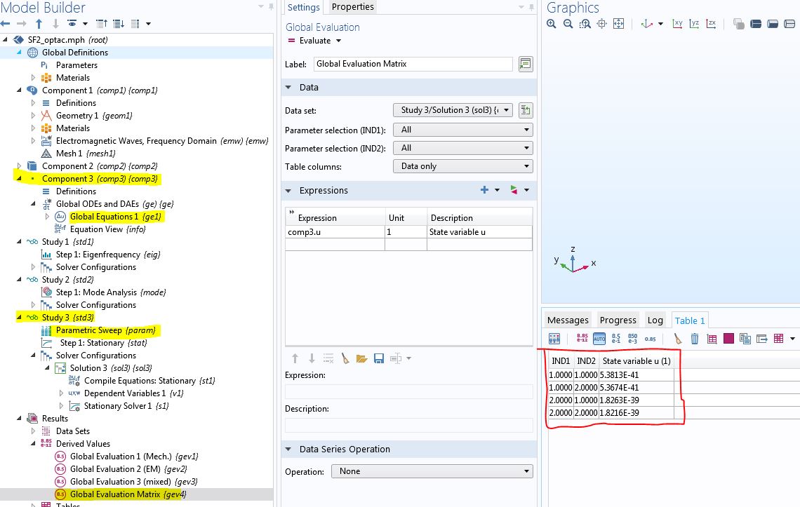 In the "Derived Values/Global Evaluation 1" section, if I select "Study2/Solution2(3)" , it exports some values but I have no idea for which mechanical mode it is computed for and if I choose "Study2/Solution2(4)" It says "Undefined variable", which is weird because it is perfectly defined in the EM components.