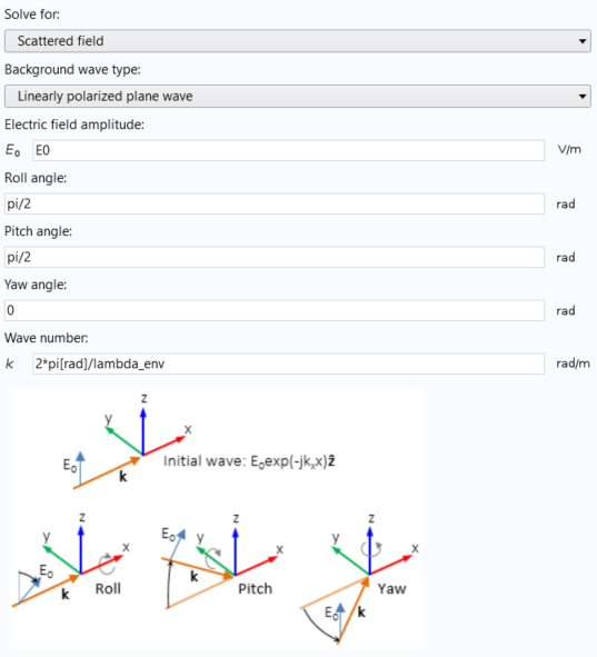 Hi all, I'm working with Comsol 5.2 + Wave Optics module. I need to use the scattered field formulation in order to access the relative electric (relE) and magnetic (relH) fields. To understand how the modelling works, I simulated the propagation of a plane wave in vacuum (E field along Y). So, my geometry is a rectangular box extending along the z-axis, laterally bounded by PEC (perpendicular to the E field direction) and PMC (parallel to the E field direction) boundaries and with PMLs on the top and on the bottom of the geometry (see image1). Moreover, in image2 you can see how I defined the background wave. In the simulation volume there is nothing else than vacuum, so I expected to have no "rel" fields, since my background is the analytical solution of my model.