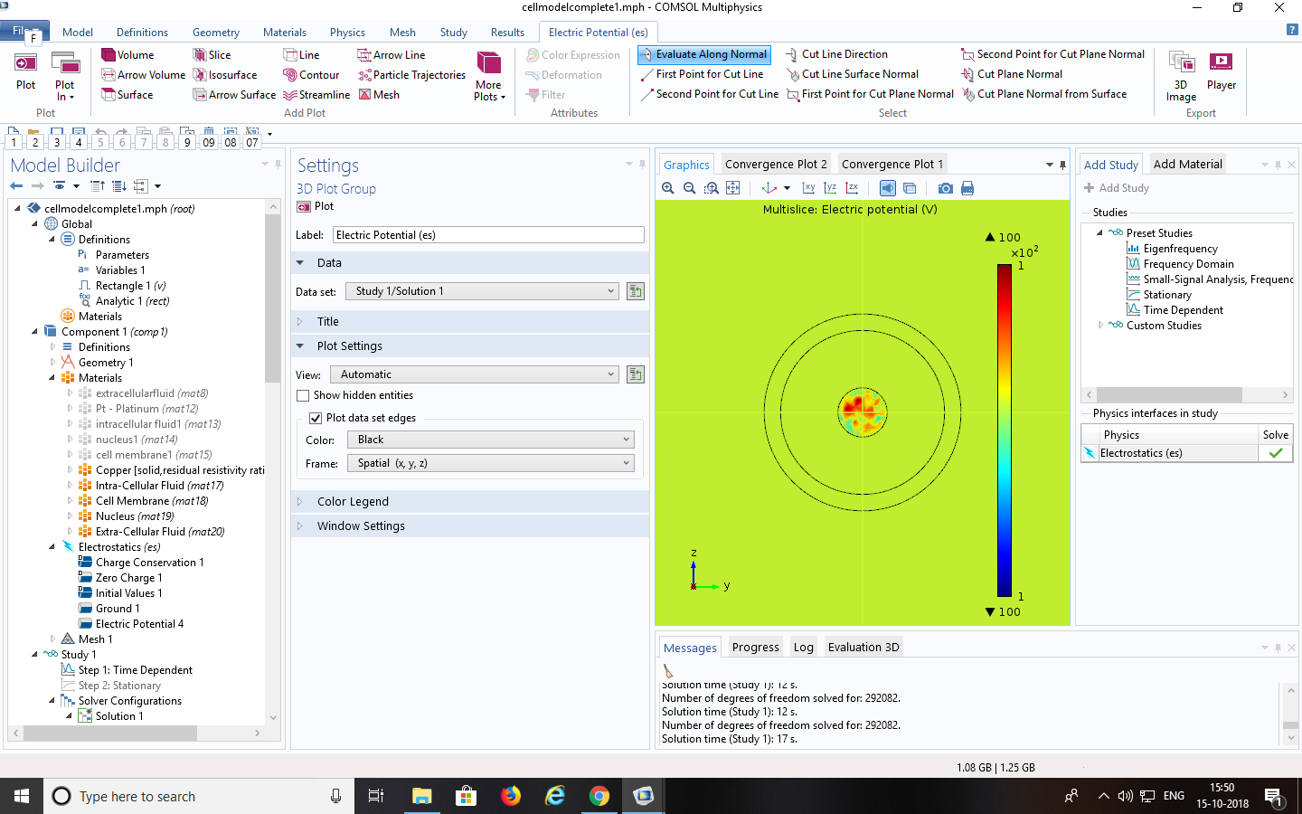 I am trying to give a pulse with amplitude 100v and time 1ns on the cell model that I have designed but the response is not according to epectation as there is no drop in the field from cell membrane to the nucleus and there is only change in the nucleus part so can you help me .