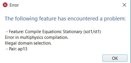 Basically what I want to do is define a "wall" that is also symmetric so I have a space that I can define the electrical properities of vacuum/air. However, when I make a rectangle that goes from the axis to distance "x" and try to solve the model, I get an error (attached below).