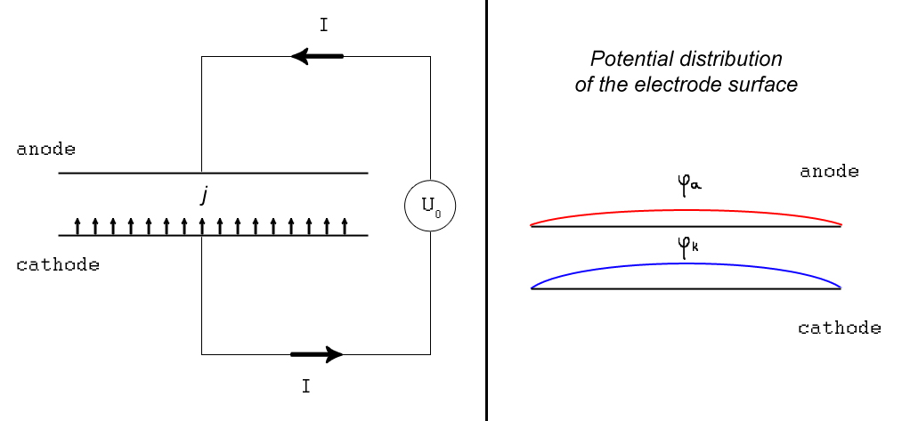 Potential distribution on the electrode surface