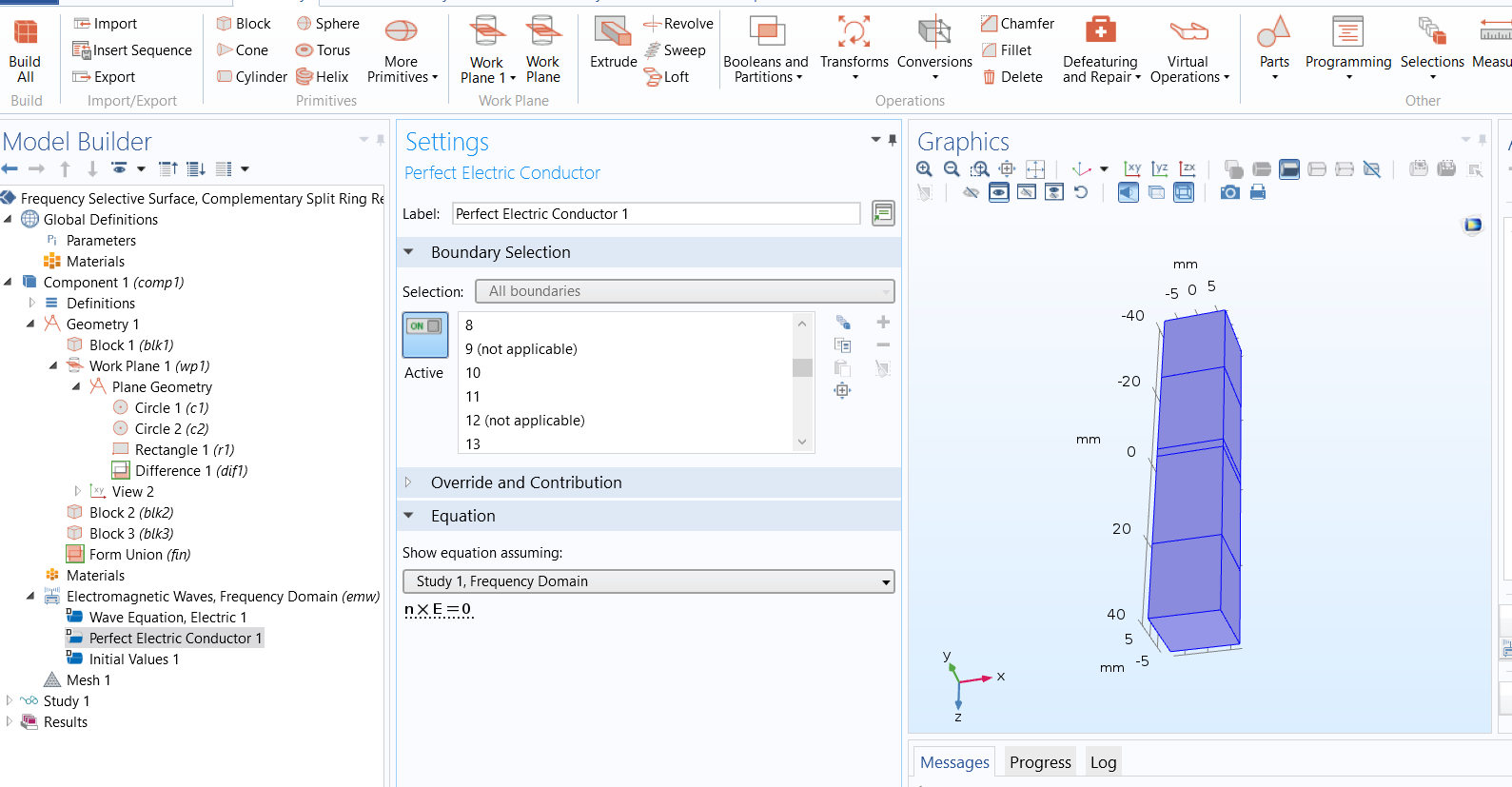 How to do the italized below? there should be a rigorous step before going to perfect electric conductor E L E C T ROMA G N E T I C WAVE S , F RE Q U E N C Y D O M A IN ( EMW)Set up the physics. First, define physics-controlled mesh maximum element size. Use Floquet-periodic conditions on all side boundaries.Perfect Electric Conductor 2 1 In the Model Builder window, right-click Electromagnetic Waves, Frequency Domain (emw) and choose Perfect Electric Conductor. 2 Select Boundary 12 only. Periodic Condition 1 1 Right-click Electromagnetic Waves, Frequency Domain (emw) and choose Periodic Condition.