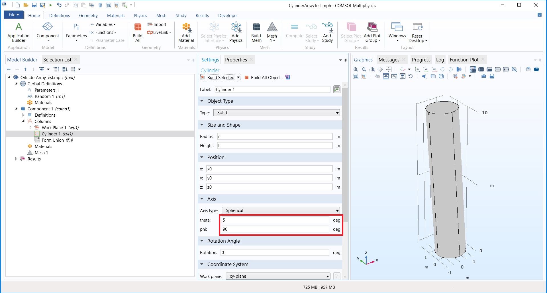 Randomise theta and phi angles of column geometry?