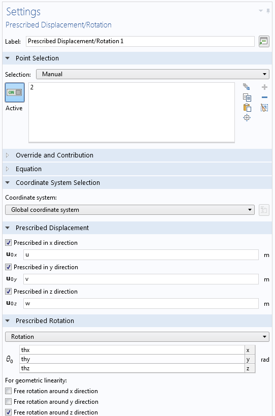 - You can separate the two ends to be hinged, either by using Form Assembly, or by moving them apart by a small distance. Then you put one Rigid Connector at the end of each beam, and couple them as in the example https://www.comsol.com/model/assembly-with-a-hinge-10569