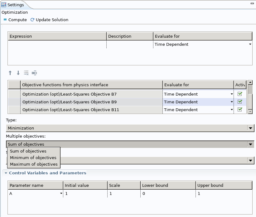 I want to know what is the difference between "Sum of objectives", "Minimum of Objectives" and "Maximum of objectives" in a Multi-objective optimization study.