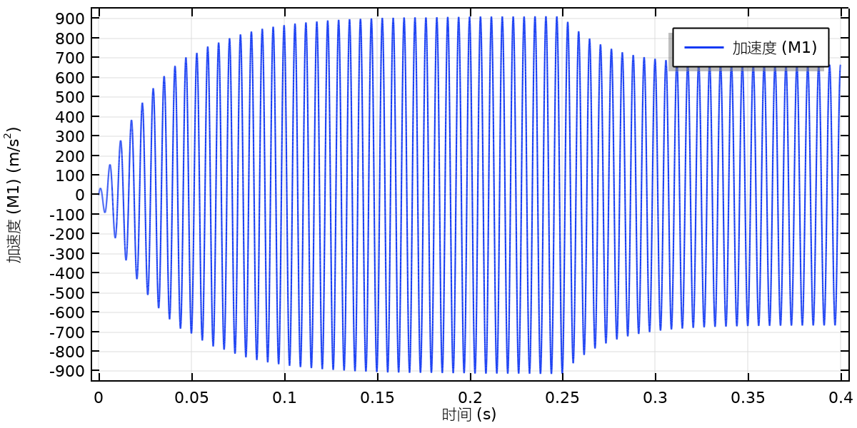 I use the lumped mechanical system interface to solve a single-degree-of-freedom system transient simulation. The harmonic frequency is the system natural frequency. Why does the steady-state acceleration in the calculation result change? As shown below.