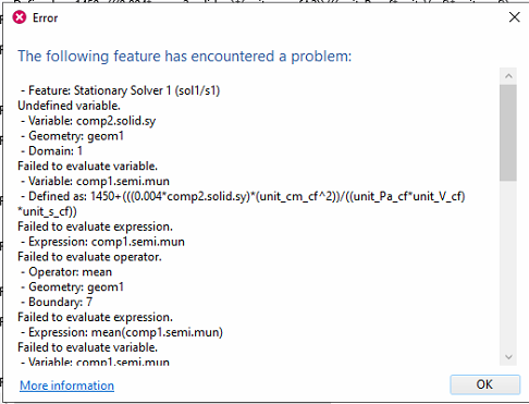 Screenshots attached show a rough example of how I am defining my property as a function of result from comp2, and the error I receive when I run my second study.