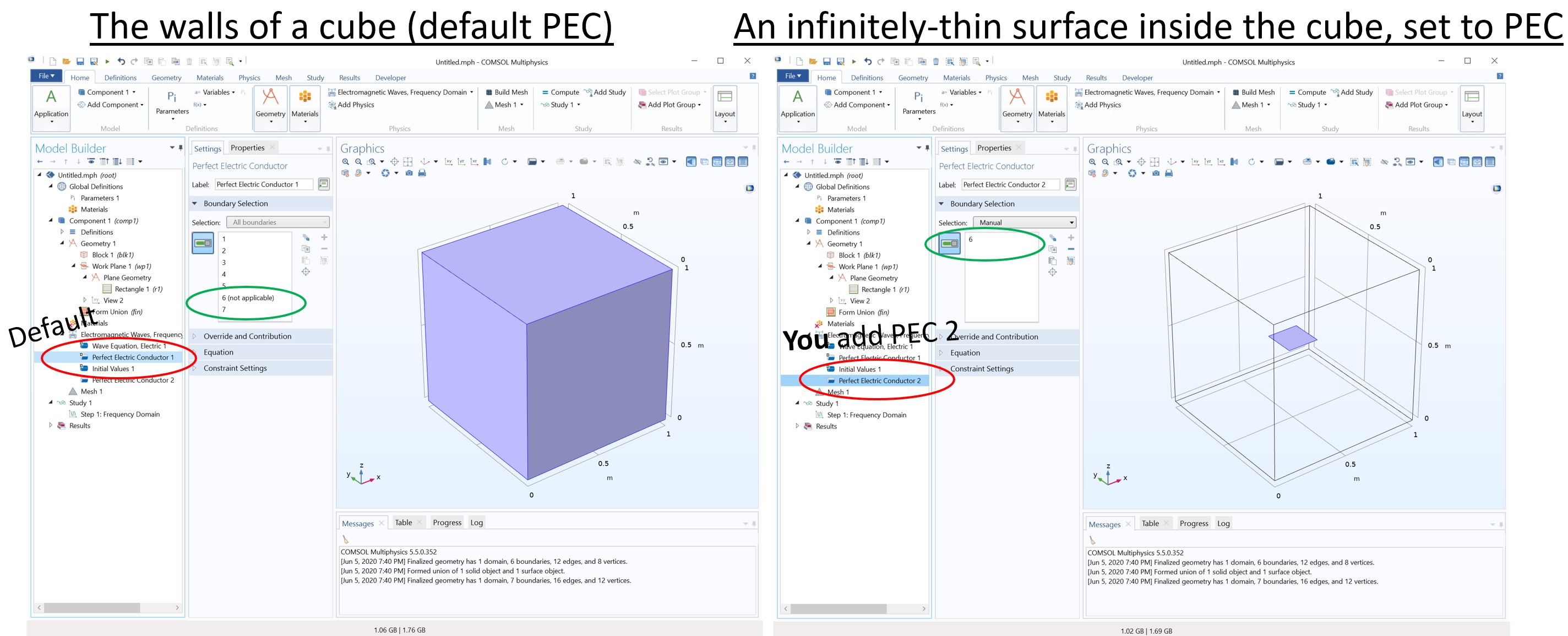 You are welcome. I should add that, in principle, you *can* use an infinitely thin surface, but to set it as a PEC, you will need to create a separate PEC boundary condition for it. E.g., see the attached figure for how to do that. Personally, I prefer to represent most real-world 3D objects by 3D geometries, when working in a 3D model. But again, you don't necessarily have to do that.