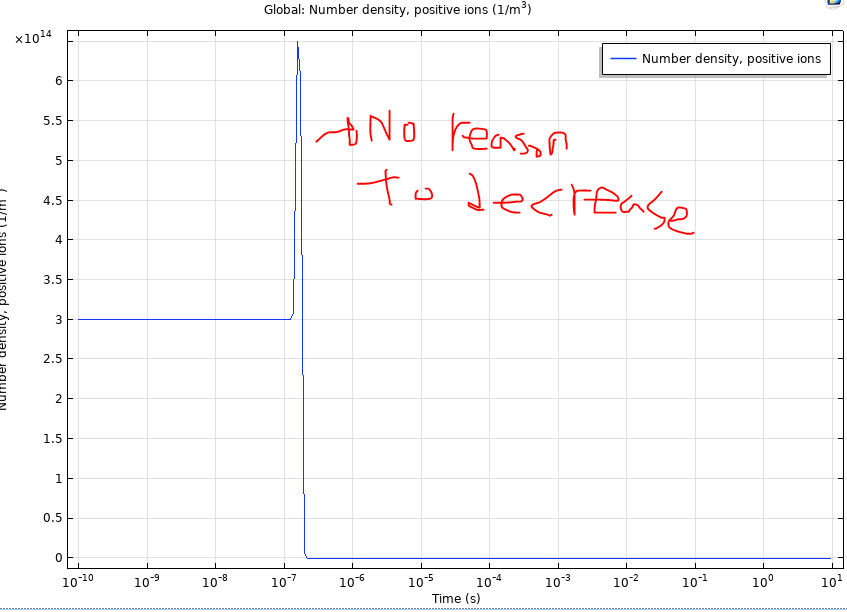 why this happen? I disabled all the recombination and attatchment ( my expectation is ion density remains constant after ionization, pulse)