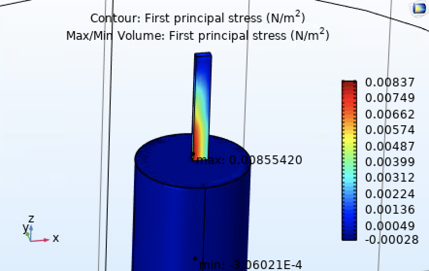 Hi Will, I have no experience with this type of model in particular, so instead I'll give you some methodology advices. 1. It is probrably helpful to debug this on a simpler version of your model, for rapidly identifying the root cause of the problem. What's the simplest model you could build with COMSOL that would exhibit the same issue? Perhaps a 2D model, maybe with revolution symmetry, can be similar enough for testing purposes. 2. Are you quite sure that you are plotting the right quantity? 3. Are the equations active on the domain where you want to plot? 4. If your model stores more than one solution, is your plot taking its input from the correct dataset ?  5. When you say the stress is 0.0, is it exactly 0, or too small for the colorbar? It can help to select just one segment, or use log-scale. 6. Are you confident that the mesh is fine enough? I know these tips are quite generic but hopefully useful nonetheless Best, Alexis