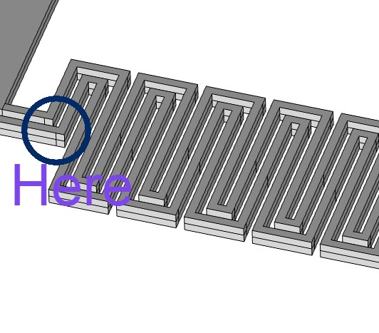 I am using COMSOL 5.4 I've used plane geomtry to create some meander structure and extrude that part. I've used many rectangels and combined it together to form a union.