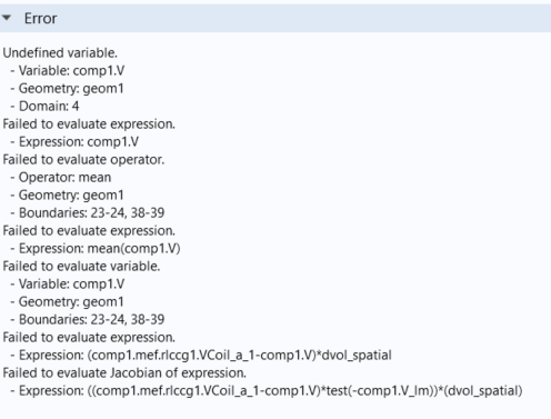 However, when I add another material on the surface of the inductor, an error is generated pertaining to the electric potential, an undefined variable - comp1.V. When I just use the Magnetic fields interface, there's no such error. As I see to it, the RLC coil group in the MEF interface computes the electric potential difference between the coil turns and assumes the potential to be the same across the coil cross-section, which isn't true in my case, as I have two materials associated on the coil domain. Is there any solution to modeling these thin domains surrounding the coils? I have attached the .mph file and generated error for your reference. Any help would be appreciated.