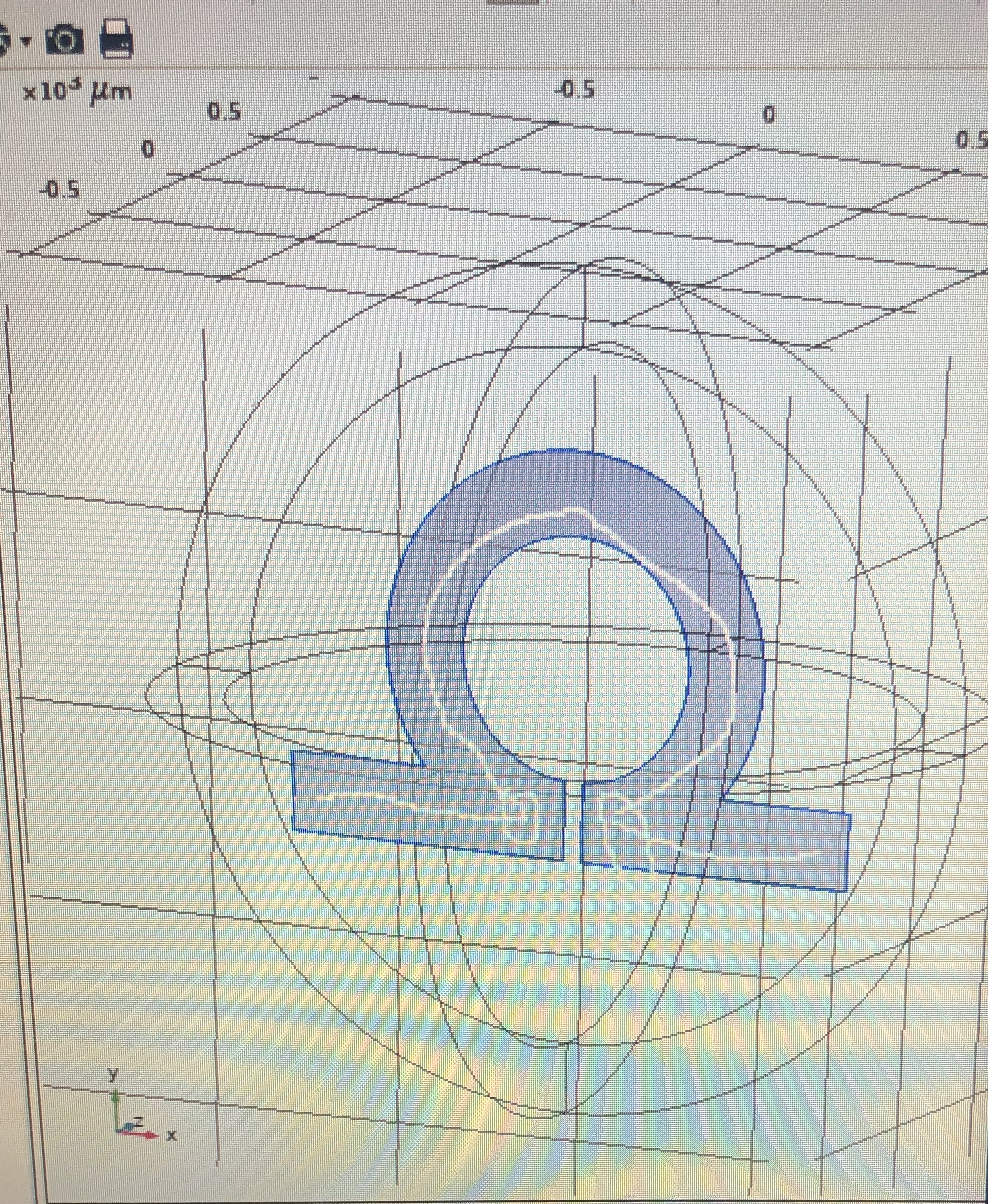 Hi everyone, Some background: I am trying to find the magnetic field of this omega shaped wire inside a sphere. I used the Electromagentic Waves, frequency domain and I am doing a frequecy domain study. Some parameters to be exact I have a current at 1 [A/m] and a frequency of 2.97e9 [Hz]. I applied a surface current density of 1[A/m](exp(i2pi/(c_const/5freq))sys2.phisys2.r where my sys2 is the given cylindrical system in the definitions. Since, my structure is irregular and has 2 straights portion and one round portion, I want to have current equal and continous at both the 2 sraight parts and the round part. I am unable to find any help anywhere. So any help is appreciated, thank you. I am attaching my mph file and a picture of how I want the current.