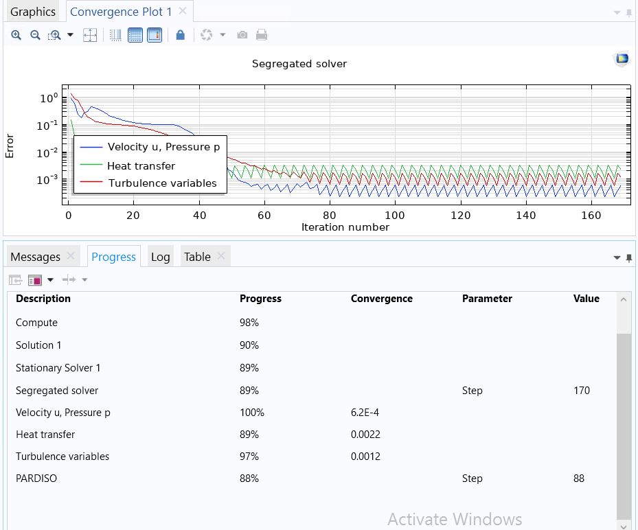 dear all I have program contain ( heat transfer and turbulent flow ) , the compute time is fast but after arrive to 98% it takes very long time . i dont know what is the problem . i attched the picture of solution progress . please if you have any solution let me know thank you