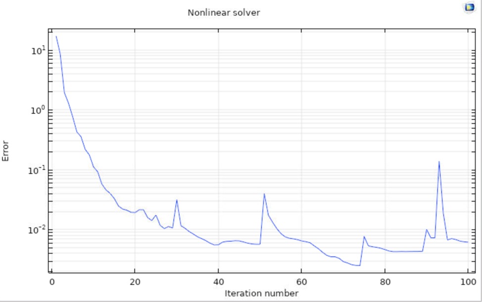 The second time I ran the simulation, I did the exact same simultion in the tutorial, but this time I also added the Nernst-Planck Poisson (NPP) equations from the Chemical Species Transport model because the NPP equations are required for the purposes of my project. This time, when I tried to perform the same studies from the original simulation tutorial, I got an error message and the 'convergence plot' did not reach convergence; the plot was more erratic with multiple peaks and did not converge. I should also mention that the study performed in both of the simulations I did were stationary, so time is not a factor here. (screenshots of the non-converging plot and error message are also attached)