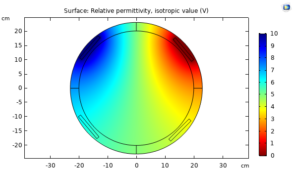 1) I am building a model Electrical capacitance tomography, based on the sensitivity matrix helps to find the object needed to be detected. in this 4 sensor has been used in circular object (40 cm) diameter has a phantom. where the four sensor or electrode which is placed in the circular body, the capacitance matrix will be used to find the capacitance value. here I need to find the sensitivity of the electrode or sensitivity of the object which is detected in the form of plot or graph 2) clear information is 2D model, AC/DC and stationery. 3) The material property based on the EPSILON_r (permittivity). so how to plot the permittivity as we find for electric potential V.