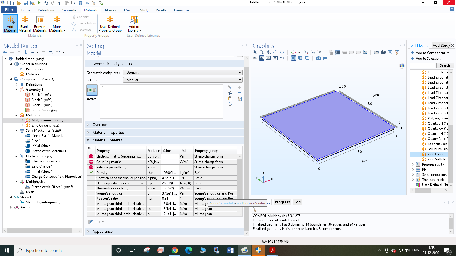 Need The Elasticity Matrix, Coupling Matrix, Relative Permittivity Values Of Molybdenum.