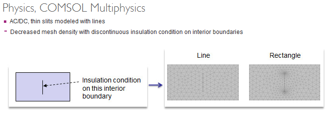I'm currently experimenting with using very large aspect ratio rectangles (100:1) and setting an electrical insulation boundary condition on them. It seems to be functioning though I had hoped that the suggested update in 4.0a would make this easier. I envisage that with the small size and large number of 'cracks' (rectangles) I will eventually run into meshing problems with my rectangle method.