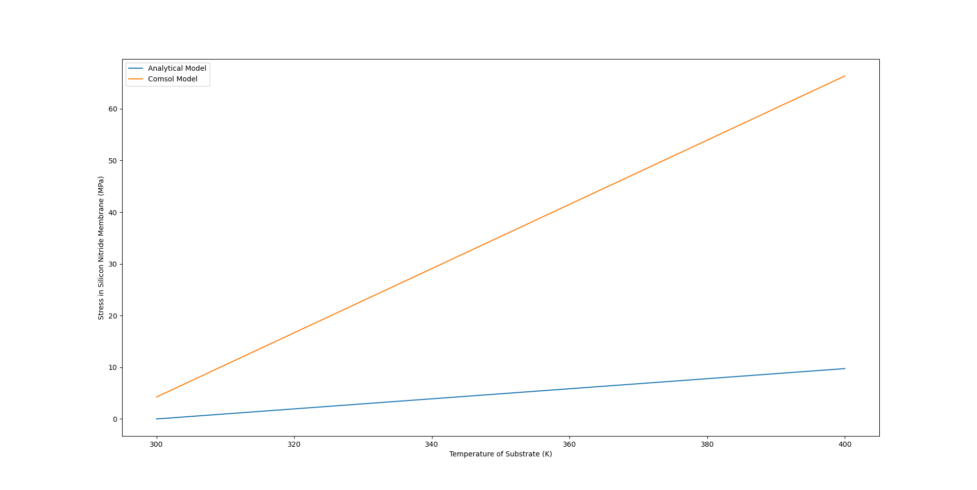 I am trying to plot the stress in function of the temperature in the middle of the SiN membrane ("Middle SiN" 2D cut point in my Comsol file).