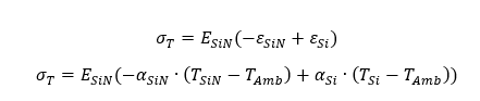 I have developped an analytical model where I assume that the deformation of the SiN will be equal to the deformation of the Si and thus I have this equation (See Attachment: Equations.png)