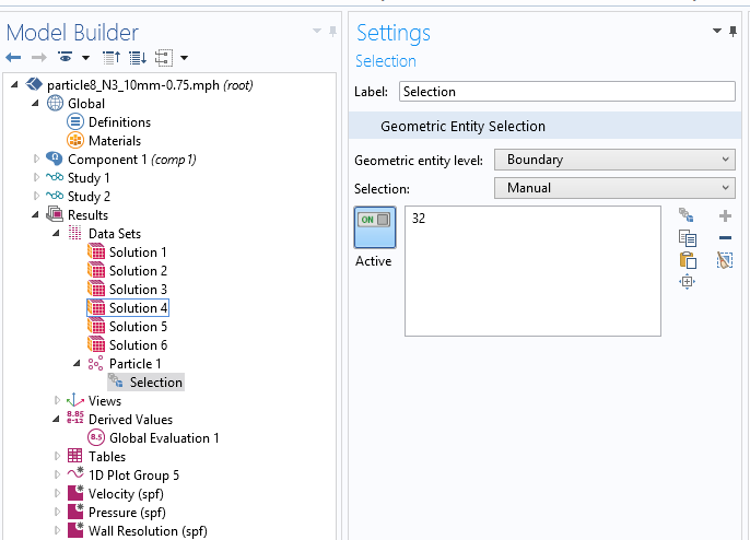 The model we are working on is part of vascular network and we are using as physics : structural mechanics, laminar flow, darcy flow, and particle tracing for fluid flow. Everything is working up to the point where we can calculate the particles trajectories but we need to be able to calculate how many particles pass though a specific area section. I have tried to use the Total number of particles in selection, Particle density, Particle position from the results in order to accomplish this. Unfortunately when i try this i get the following error: