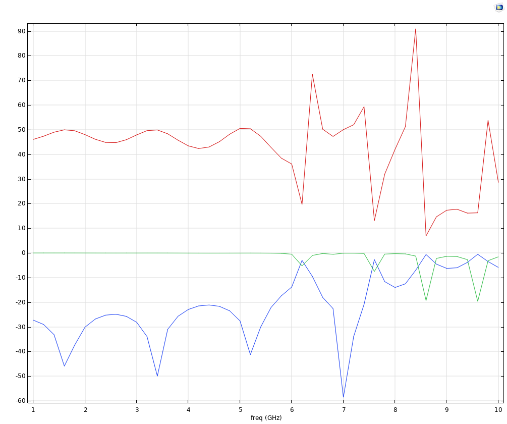 Now my question is if the S parameters I got are actually correct. (S21 is green, S11 is blue, characteristic impedance at lumped port 1 is red) Another thing I would like to know is why there seems to be no electric field propagating on the surface of the conductor. Maybe I am missing something.