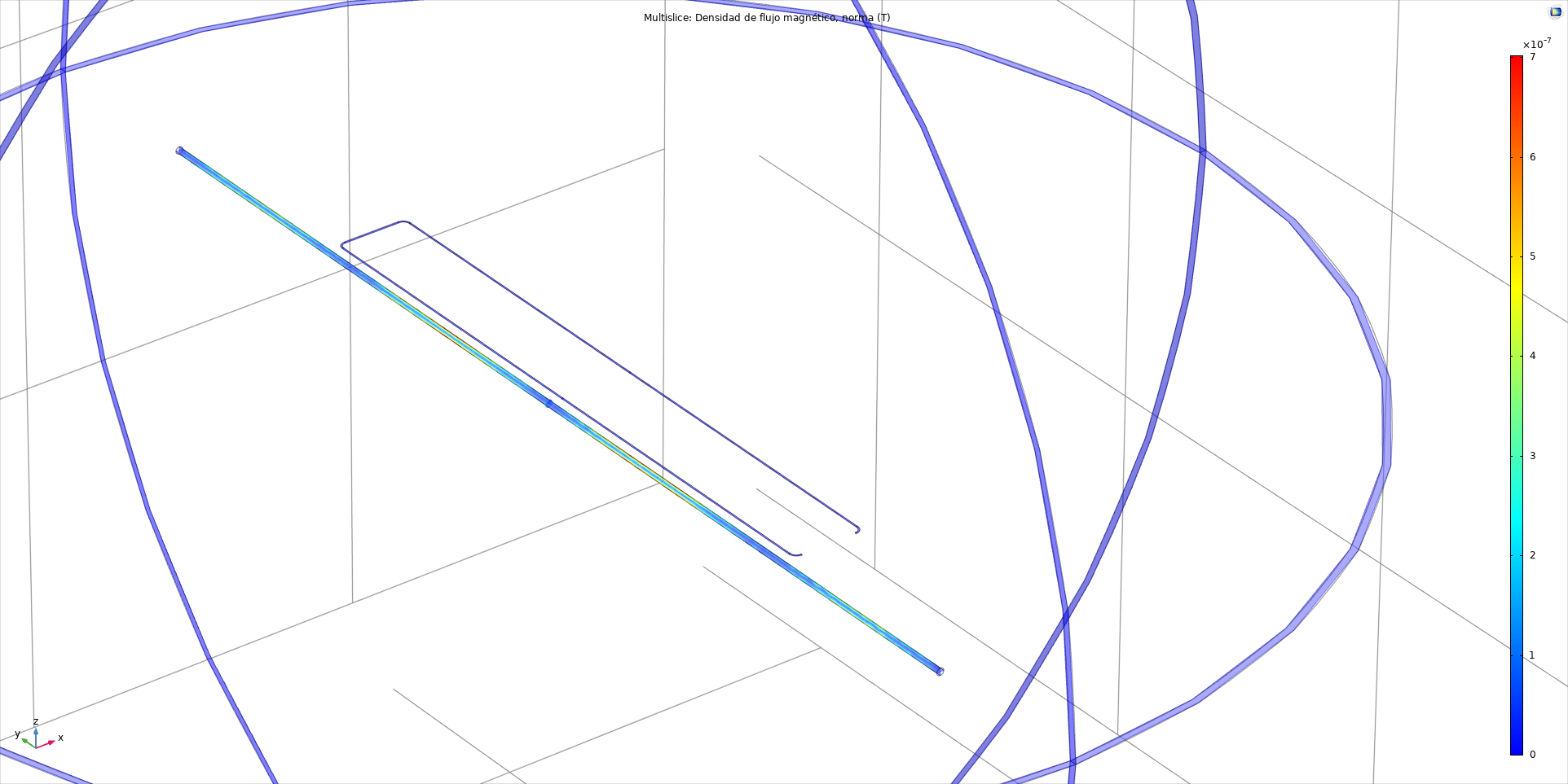 I have an issue with a 3D model. I am trying to show the magnetic field created by a DC current (10 amps) trough a straight wire, I have chosen magnetic fields and electrics (steady), and the result after calculate do not show this magnetic field, just a very low value... Even when rise the current (till 100 amps), it does not change... I have done it in 3.5 version in 2D and works very well. I do not know what I am missing.