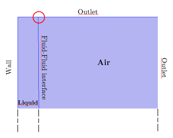 I am running a two phase simulation using the moving mesh method. As you can see from the picture attached, there is a liquid phase and a gas phase separated by a vertical fluid-fluid interface. The upper boundary condition is set as outlet. When I define the liquid-liquid interface, the software automatically set the point in the red circle as part of wall-fluid interface and hence it assosiate to it a contact angle. In reality that point should belong to the outlet and there should not be no contact angle. How can I fix this problem?