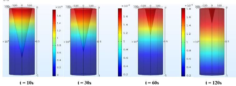 Hello, I hope you are doing well. I am modelling the hydrolytic degradation of a polymeric microneedle inside the skin. The surface degradation of the microneedle occurs from water present in the skin. As the needle degrades, the boundary between the microneedle and skin keeps on moving with time as shown in the screenshot attached. The skin is divided into two layers i.e. stratum corneum and viable epidermis. The model is 2D axis-symmetric. I am having a problem in putting a deformed geometry condition as it runs for the initial few seconds and then shows the error of "Repeated error test failures. May have reached a singularity. Time: 22.227950699138002 s.The last time step is not converged." Please have a look and tell me where I am going wrong in implementing the deformed geometry. I tried to run with different velocities and meshing but still not able to implement it. Thanks in advance