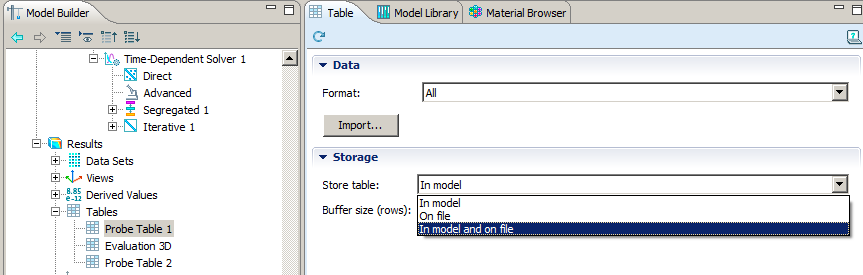 I am using several probes to plot and also write the data to a table during solving. With the new version, since we have the option to save the table in the model and as a separate file as well, I am using that option. In this way, as the model is running, the probe data are being saved to a text file.