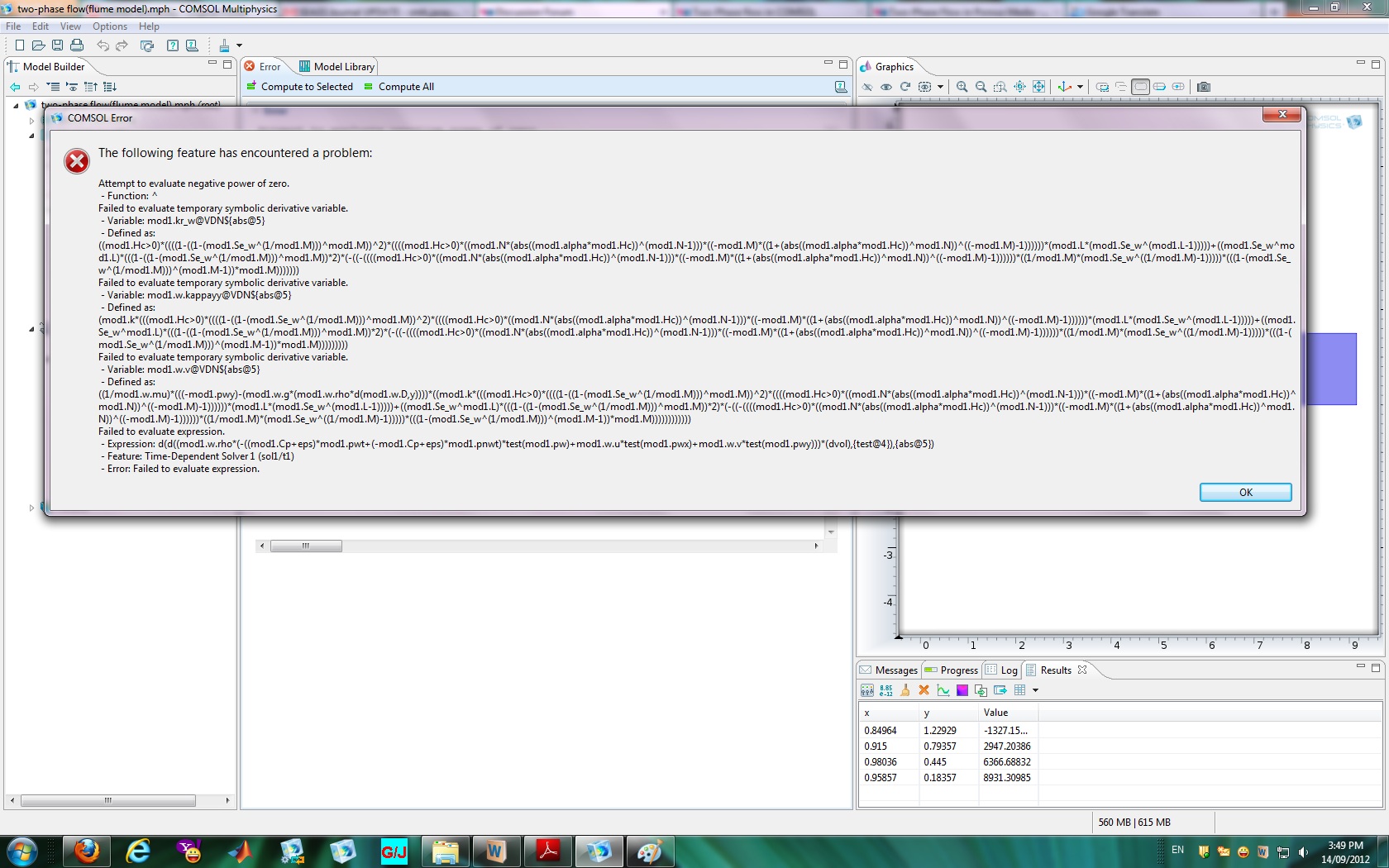 I want to create a model for two-phase flow in porous media. I found an example in model gallery (Model ID:499) which is similar to my model (the example built in version 3.5a but my version is 4.3). I have built my own model like to this example but when I run my own model this error message appeared: