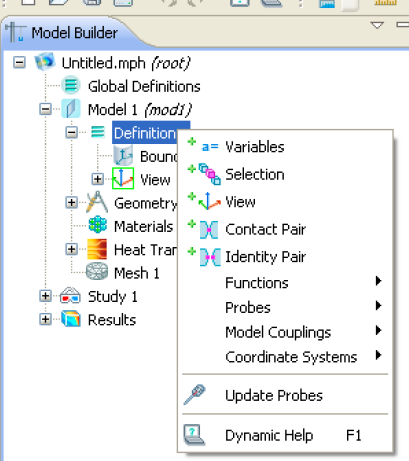I cannot find the Infinite element domain node, which I thought was under Definitions. I'm using the Heat Transfer in Solids in the base package. If it is not available there, where could I find it?