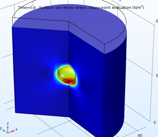 What worries me about this strategy is that the properties of the domain that I am calculating are very different from those of the "auxiliary" material that I am putting into the hole, and as I make the model more complex I am afraid that it will generate problems with the solver... convergence problems, very abrupt jumps in the stress state, etc.