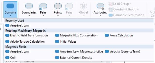 I am learning COMSOL Multiphysics 6.0. I have been learning with a user guide to simulate: Generator in 2D, wich was created by version 6.1. In the partROTATING MACHINERY, MAGNETIC (RMM). In Item 1, in thephysicstoolbar, I must clickDomainsnext, I must chooseConducting Magnet, but it don´t show. Only it show me the options that you can view in the screen shot. ¿Can you help please? ¿Why not appear Conducting Magnet?