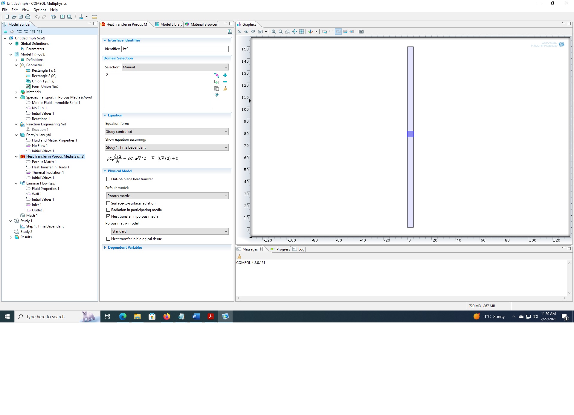 For the tube furnace, I'm utilizing a simple 2D geometry, and for the sample, I'm using heat transfer in porous media.