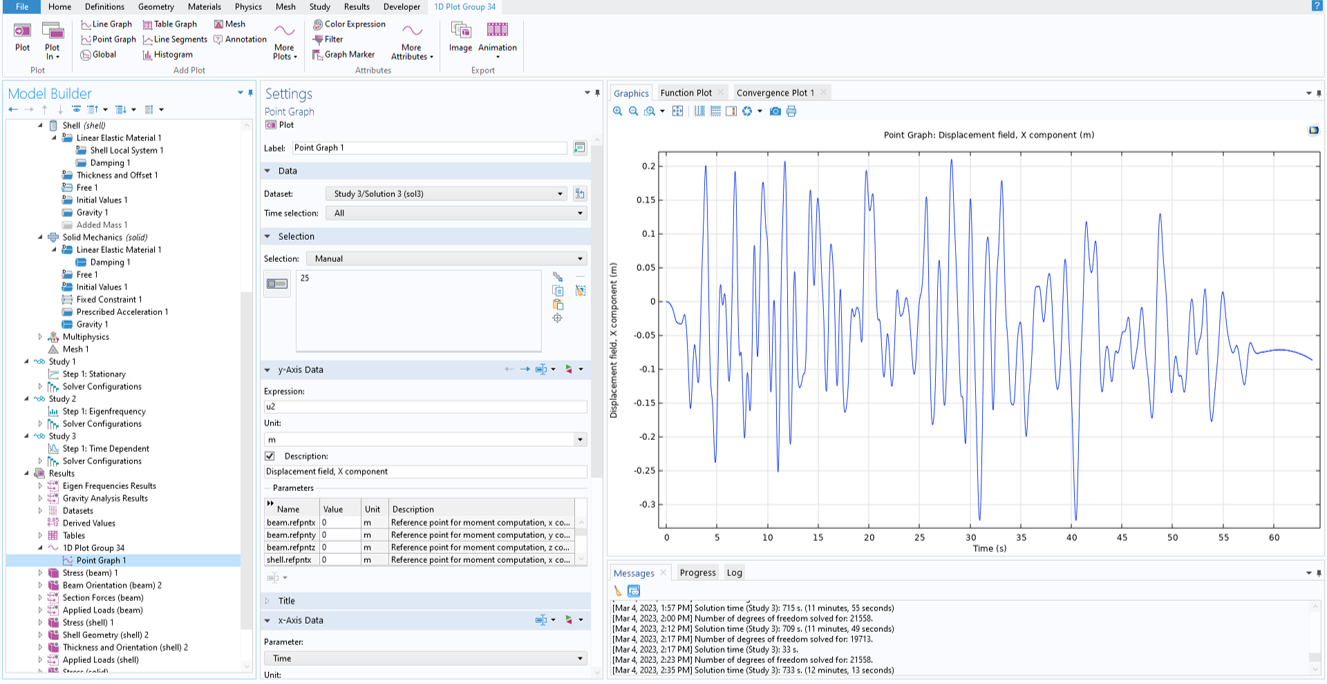 Henrik Sönnerlind, thank you very much for your feedback and sorry about the late reply. I am using the acceleration at the bedrock level. Yes i have tried to reduce the tolerance but the problem is still there. Please excuse me for adding a question to an unsolved problem. in fact since i am running a nonlinear problem, i have considered the contact feature between raft foundation and soil interface , also material plasticity in solide mechanics module. Due to these considerations, the system has automatically included the geometric nonlinearity which is ok! but my problem is that when i run the analysis, there is no convergence , i mean the analysis stucks up.I do not know whether i am missing any bounary condition definition somewhere else. Please i need your advice.