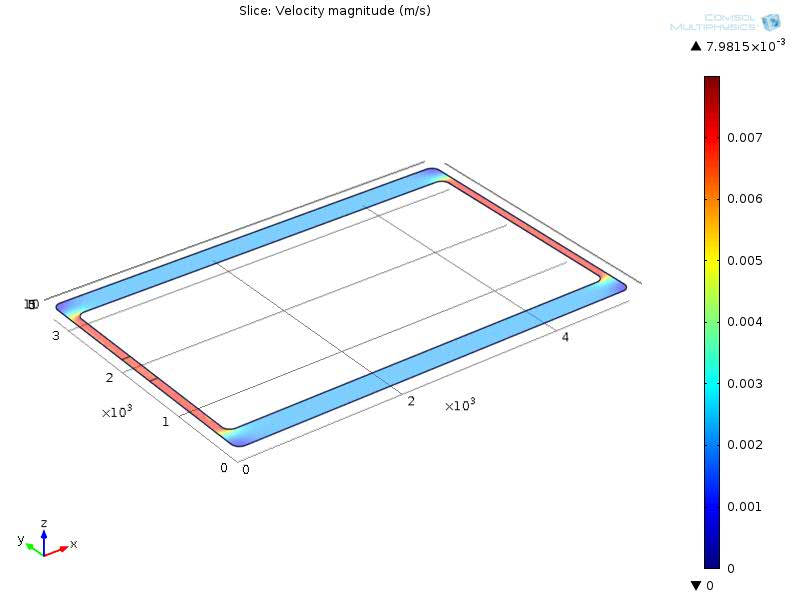 I am doing simulation of chemical surface reaction in a 3-D reaction channel (shown in the first 3D channel profile). The laminar flow is generated by volume force in specific domain (the blue domain in the first image). When the volume force was settled with a very high number, the simulation can be done (shown in the second velocity profile image). But when I decrease the value of volume force, the simulation can not be done with some error info as: