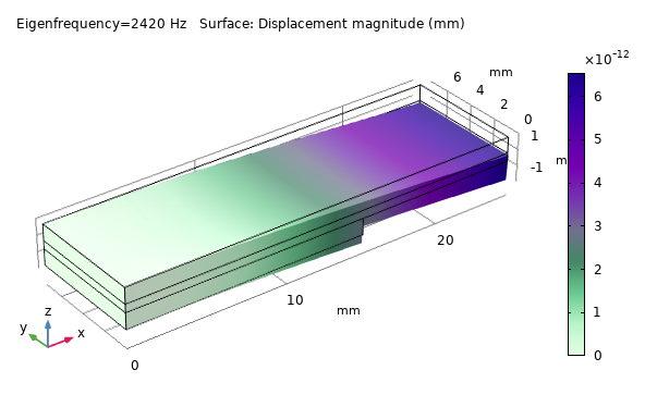 An eigenfrequency analysis solves for the natural frequencies and mode shapes. The mode shape is a vibration pattern (it can be scaled or normalized and still the same mode shape is maintained). The mode shapes are not meant to be interpreted as physical displacement amplitudes.