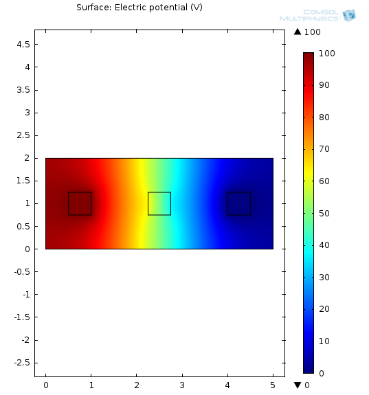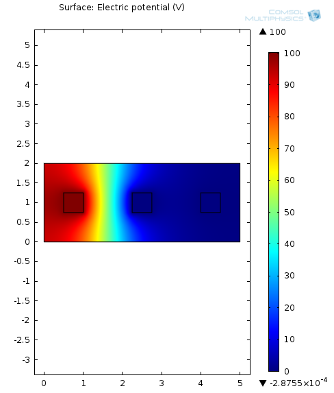 I have attached two different models of 3 copper "terminal" like objects in the middle of a relative insulator. I want to see the electric field and potential field mapped onto the geometry. One model uses the Electrostatics Interface and the other uses the Electric Currents Interface. Each model has a potential on the left terminal, ground on the right terminal, and nothing assigned to the middle terminal. Theoretically, the voltage should vary linearly from the potential to the ground with a little glitch in the linearity over the middle terminal. This is what the file "Electrostatics_ForumQuestion.png" file shows, which is the correct one. The other picture file "ElectricCurrents_ForumQuestion.png" shows an incorrect interpretation of the model (a non-linear change of the voltage with respect to the distance between the potential and grounded terminals). I have also included the corresponding Comsol model files for each one if you would like to see more.