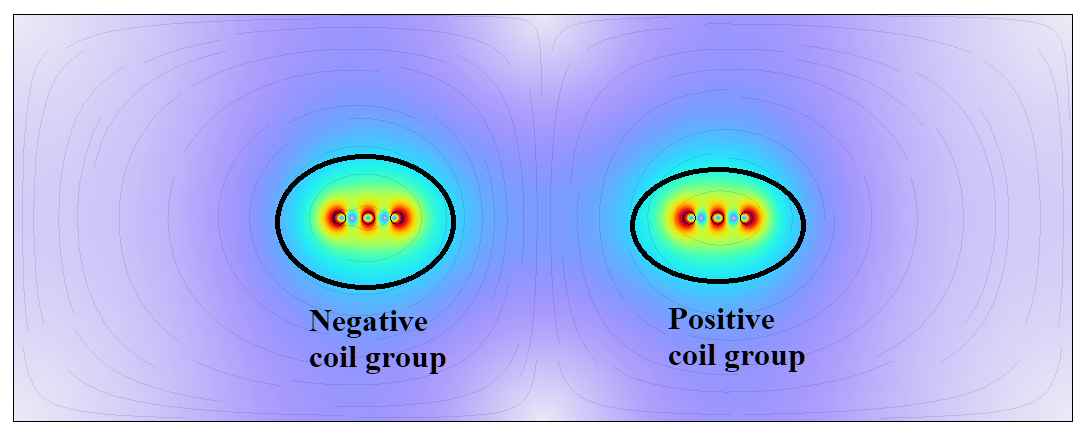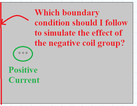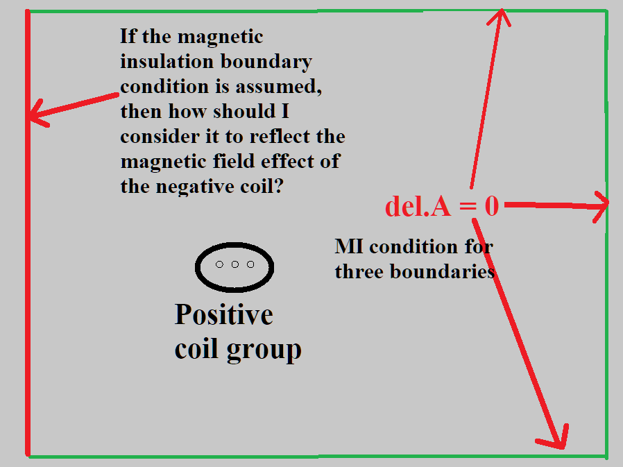 - I am already using magnetic insulation boundary condition with (del.A = 0) in three sides Now, how to incorporate the fourth side (See the figure attached), to consider the magnetic field of negative coil group in the simulation.