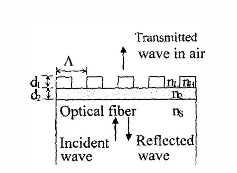 I am stuck at how to simulate such a structure (see attached), which includes grating is built in end face of the single mode fiber. Main purpose is to get the transmission.