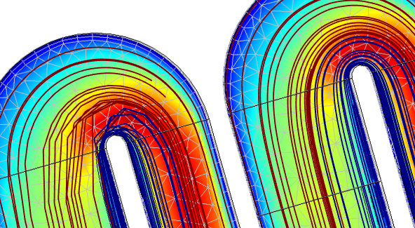 Also, I have experienced something odd, in my own model which is a periodic structere (spline) where I have mapped the velocity field solution from one unit onto the other units in the geometry. I then used this mapped solution in a particle trace study with massless particles. In the first loop/arch of the spline, the particle trajectories are jagged and weird, while in the next, they are nice and smooth (see the attached snapshot), even though the fluid fields they move in, and the time steps used in the solver, are completely identical. What is happening here?