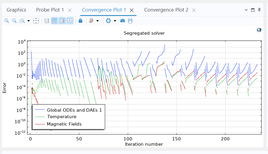 I also checked with the convergence plot and found that it didn't seem to be converged over time. I also downloaded the COMSOL's official induction heating demo and tried to add the PID controller into it and replace the input of the coil with the output of the controller, but it failed too.