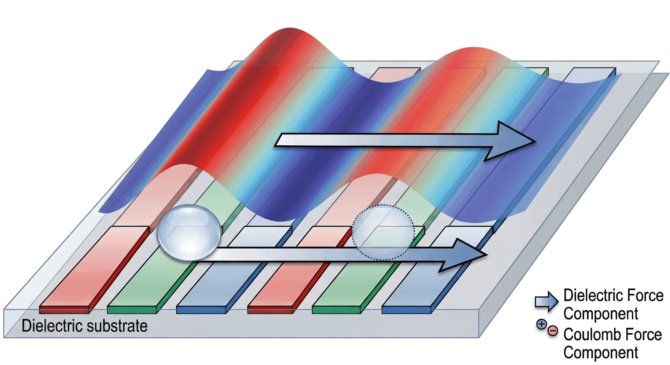 I want to perform a simulation using COMSOL Multiphysics 6.3: It is a 2D model with nine thin electrodes embedded in a thin resin layer, and a small water droplet is placed on the resin. The electrodes are 0.1 mm wide with a 0.1 mm gap between them. Every three electrodes form one group. Within each group, the electrodes are connected to three‑phase sinusoidal AC with a 120° phase difference; all groups use the same phase sequence. The time‑varying electric field forms a traveling wave, which induces charges inside the water droplet. Under the action of the electric force, the water droplet is driven to move in one direction. I don’t know how to implement this. I have tried coupling Electrostatics (ES) with laminar flow and two‑phase flow, but I cannot get the results I want.